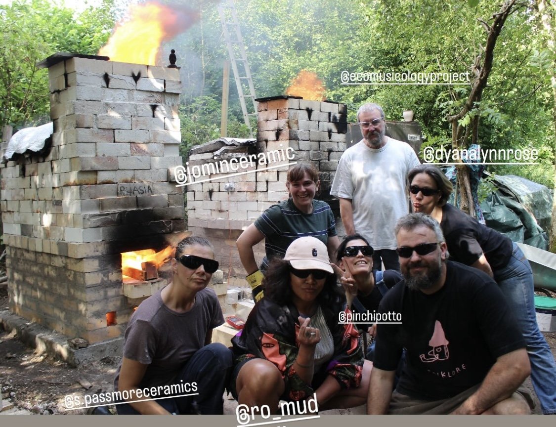 I couldn’t make it the first day - but everyone put in very hard work levelling the ground and cementing together hard bricks to build the firebox base. This type of kiln has the firebox below, where the flame moves to the back of the firebox, up through the pots and into the chimney at the front. Because of the quicker fire, you have to have very robust heat-resistant clay, and you don’t get as much ash buildup or directional marks. Next time I might try and encourage this more - using a ‘glitterschpritzen’ - a device to spray ash into the ware space.