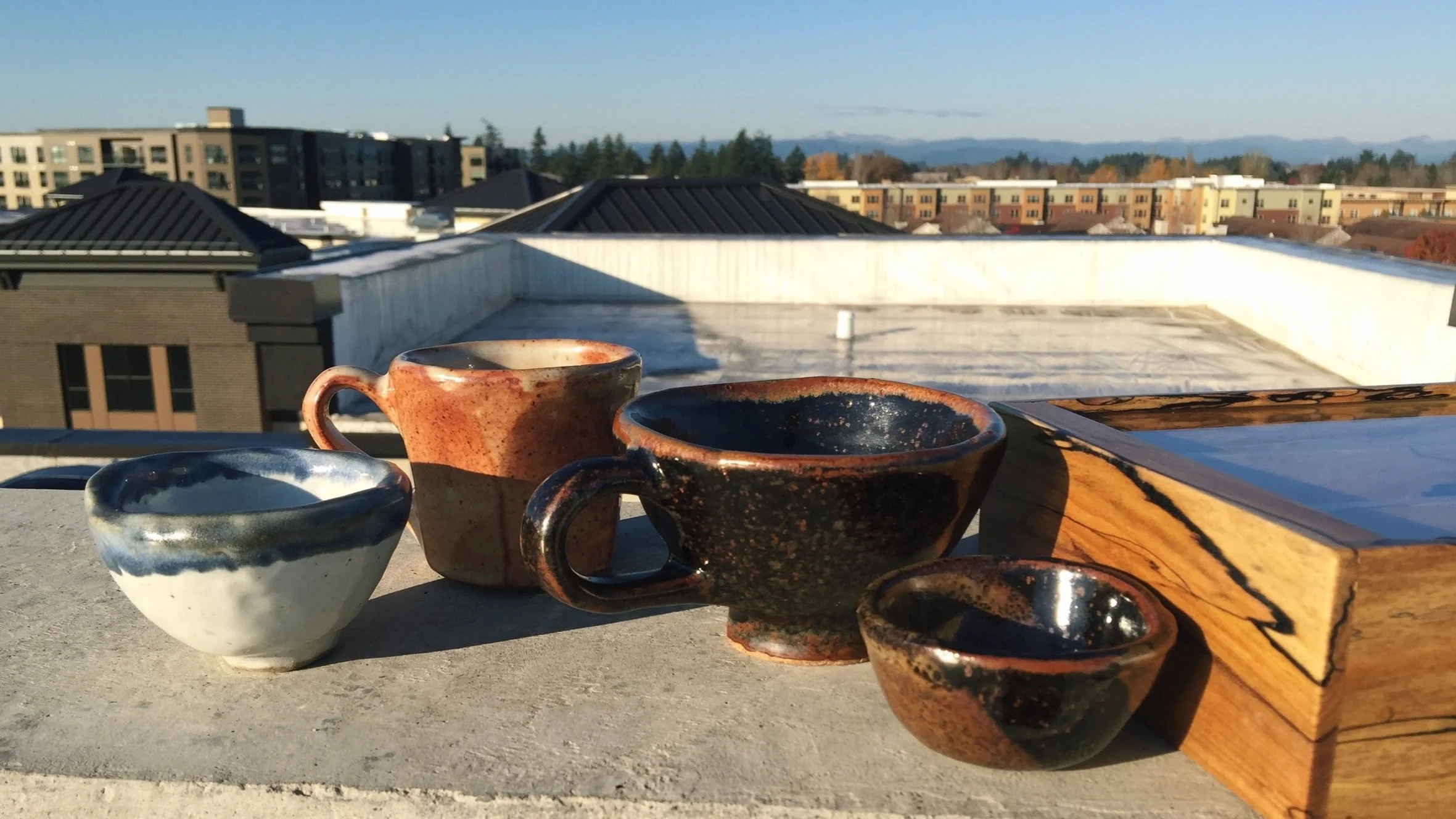 In 2015, my partner and I travelled to the US for his work, and I signed up to a class at the Multnomah Arts Center. I'd intended to just get into the Open Studio, but I missed the deadline, so the only way to get access was to sign up to the last class with availability - Advanced Glazing. I wasn't really interested in a glaze class, but Sarah Renwalt was an amazing teacher. Reduction firing was new to me - using fun carbon-trap shinos and understanding the behaviour of iron and colourants in glazes. The open studio meant I could go in most days, but it was so busy - the smallest space I've ever had to work in! We each had about a hand width to work at. I made my first pinched teacups here - boy were they heavy.