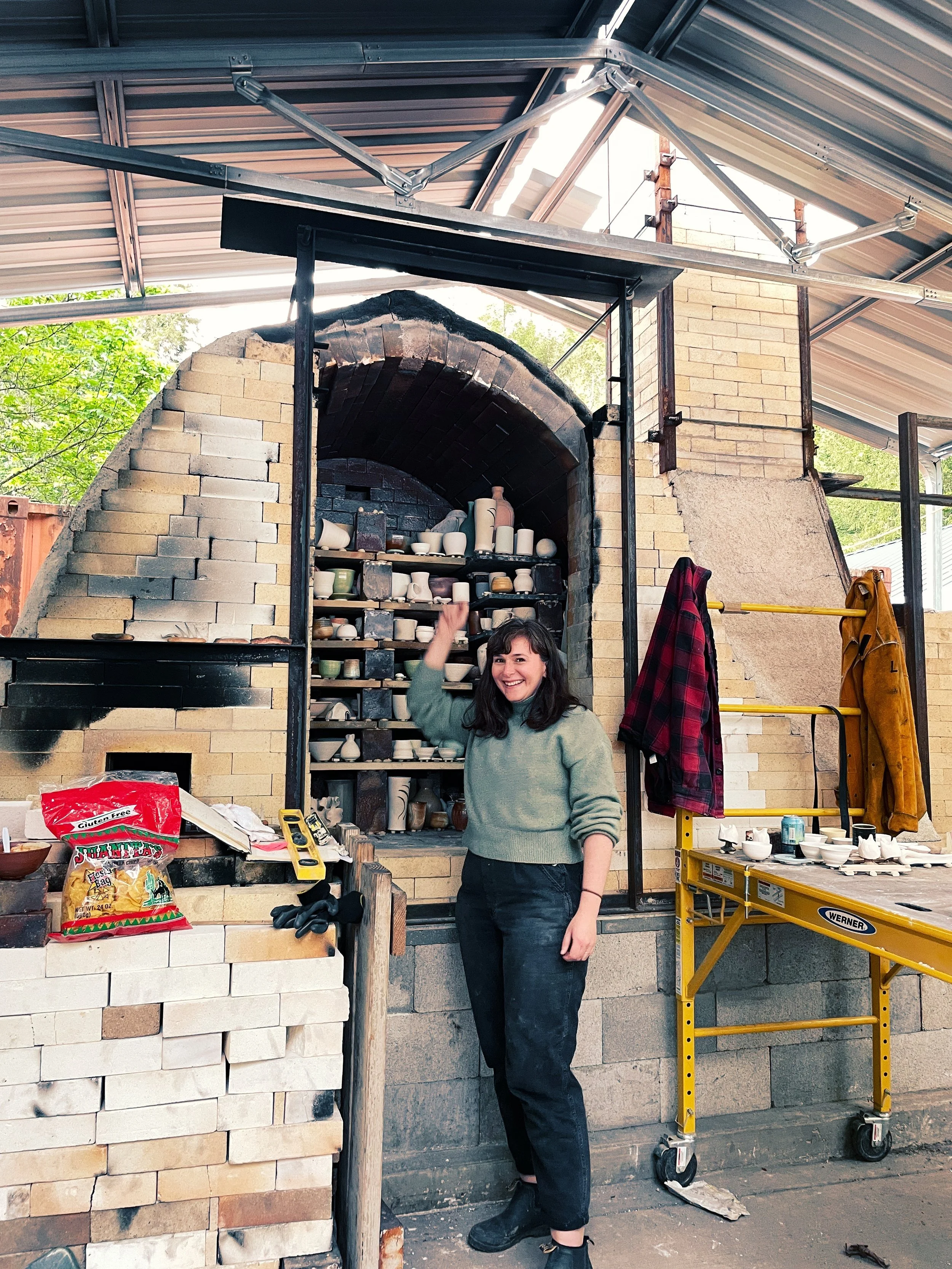 At the end of 2021, we were out in the USA again. I took the opportunity to work on my production throwing at community studio Morning Ceramics, a month before Christmas. I'm not a great production thrower, but was pretty proud to be able to make 17 mugs a week. I put some into my first soda firing, with Sam (@Suayceramics). His shared studio space at Clay Compound had a gas fired soda kiln, and I was able to take part in a firing. It was fascinating - from spraying the glazes to the flame (!) in the kiln, the drama of reduction and firing night and day. It was a beautifully quick firing though - loading on Friday, finishing on Sunday with a barbecue. Such a great gang out in that corner of Portland, too.
